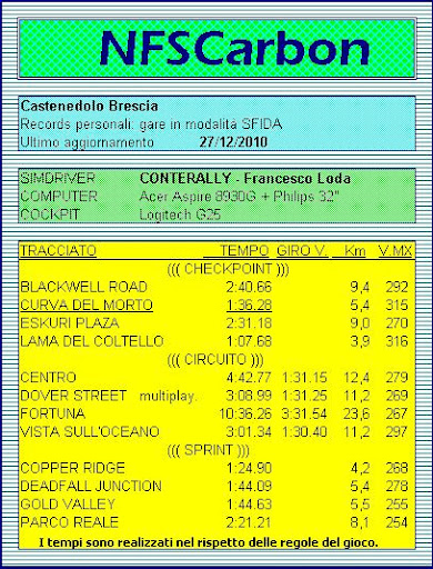 Laureati campione con la seguente tabella: voto 11 al primatista, - 1 voto ogni secondo di distacco su circa due minuti di giro/percorso. Per Need for Speed -1 voto ogni 2 secondi di distacco ogni 2 minuti.