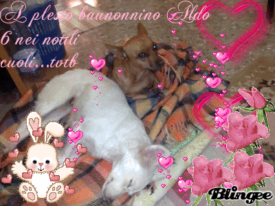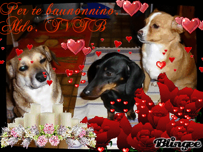 - Calo baunonnino, noi ti vediamo e sappiamo che sei seleno e che ola sei insieme alla baunonnina Elena, che tanto ti mancava... noi ti laggiungelemo pletto e pel una volta salai tu ad accogliele le tue affessionatissime canette, alle quali hai dato tanto amole e tanti baubocconcini plelibati, sul ponte dell'alcobaleno, alle soglie del Paladiso... nel flattempo tu limallai nei nottli cuolicini... ci laccomandiamo, aspettaci insieme alla baunonnina Elena ed alle tue plecedenti nipocanette, nottle solelline, Camilla e Penny... Ti inviamo tanti baubacetti sul musetto ed ogni tanto sclivici che la baumamy non ci clede che noi ti vediamo la dove sei ola e anche quando scendi qui pel accalessale la nottla baumammina...
