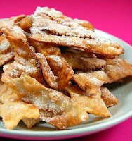 Etruschi anche questi noti dolci fritti di carnevale che prendono nomi diversi a seconda delle diverse zone ma che nella sostanza sono tutti uguali: sfoglie di pasta fritta dolcificati con zucchero o miele. La notizia l'ho sentita da uno storico di gastronomia in una nota trasmissione televisiva pomeridiana. Tipici dolci da strada, venivano venduti e consumati per le vie dell'antica Roma durante i Saturnali (che non erano altro che una sorta di carnevale antico) ma i Romani stessi avevano ereditato la tradizione dagli Etruschi. Rispetto ai dolci di oggi venivano fritti nello strutto e dolcificati ovviamente solo con miele. Allora la domanda sorge spontanea: ma che mondo sarebbe stato senza gli Etruschi? E dominiamooooooooo!!!!