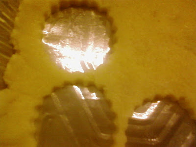 Tagliate tanti dischetti con una formina per la pasta o con un bicchiere . Disponeteli in un'altra pirofila imburrata sovrapponendoli un pò.