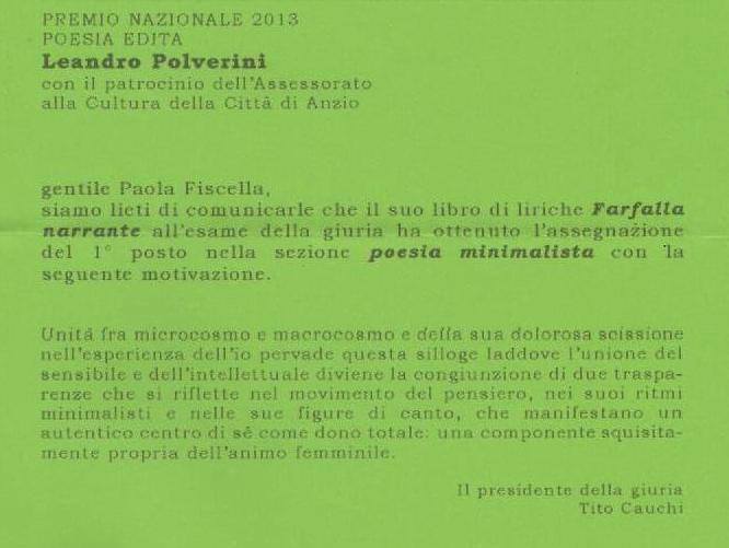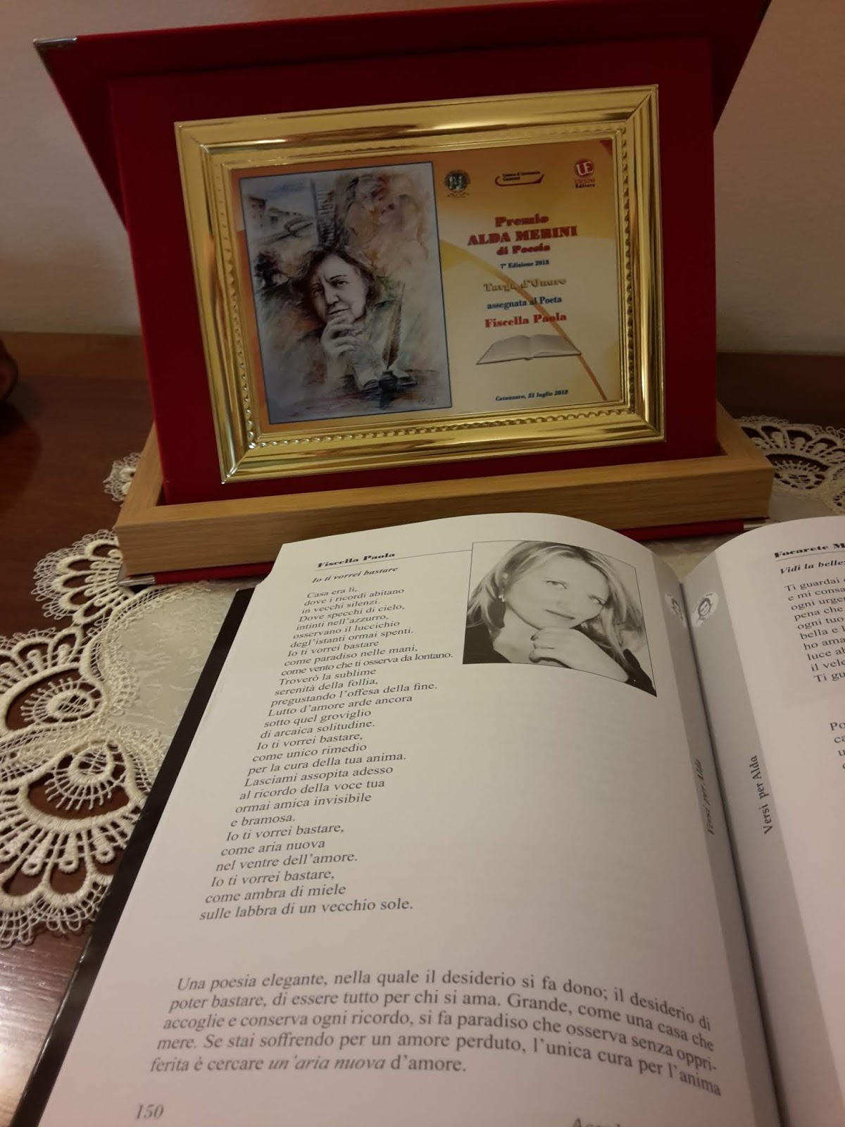 Immensa soddisfazione!! VII edizione del "Premio Alda Merini" "Targa d'Onore" Alla Poetessa : Paola Fiscella