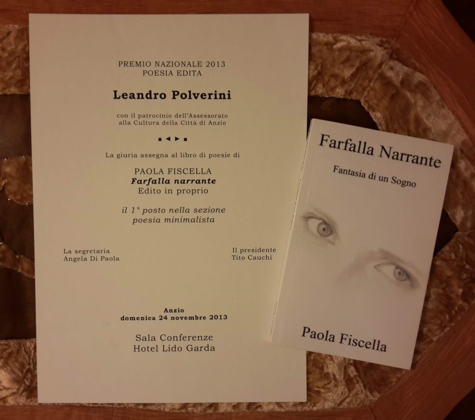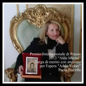 © Paola Fiscella Premio Internazionale di Poesia 2013 "Alda Merini" Targa di Merito con Attestato assegnata alla Poetessa : Fiscella Paola per l'Opera "Addii Velati" Poesia Inclusa nell'antologia "Mille voci per Alda" (Ursini Edizioni) Poesia presente nel Mio Libro : "Sussuri Soavi" "CHI COPIA SENZA CITARE L'AUTORE NON RISPETTA UN DIRITTO TUTELATO DALLA LEGGE".