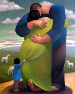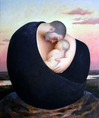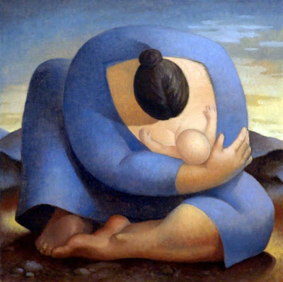 I suoi quadri rappresentano la tenera fusione tra la forza e la semplicità, e mi colpisce il contrasto tra la mole dei soggetti (che certamente rimandano a Botero) e la tenetezza degli atteggiamenti dei protagonisti, in modo particolare le madri e la maternità.