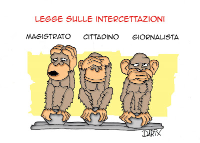 E' appena trascorsa l'ennesima giornata nera per la democrazia ,il parlamento ,protervo ,more solito ,ha posto la fiducia al decreto sulle intercettazioni,mettendo le manette alla giustizia ed al processo penale .Mafia ,malavita , faccendieri e politici a loro funzionali/organici ,ringraziano.